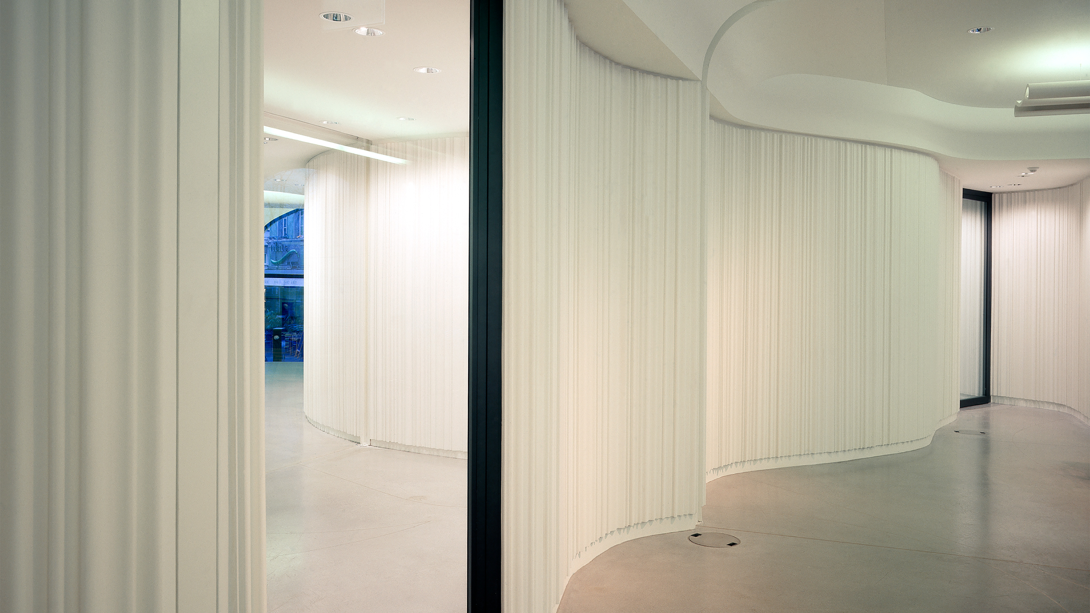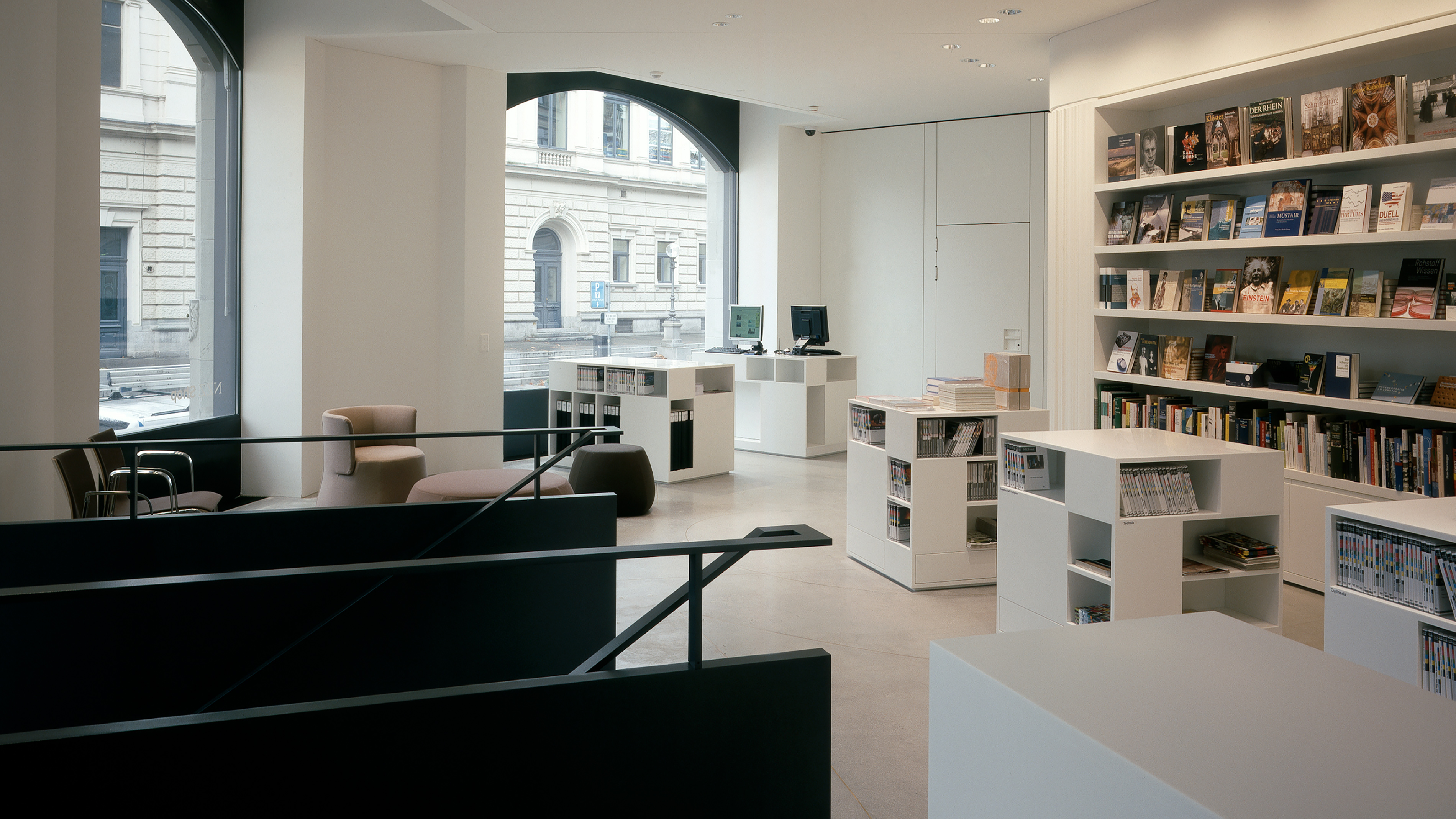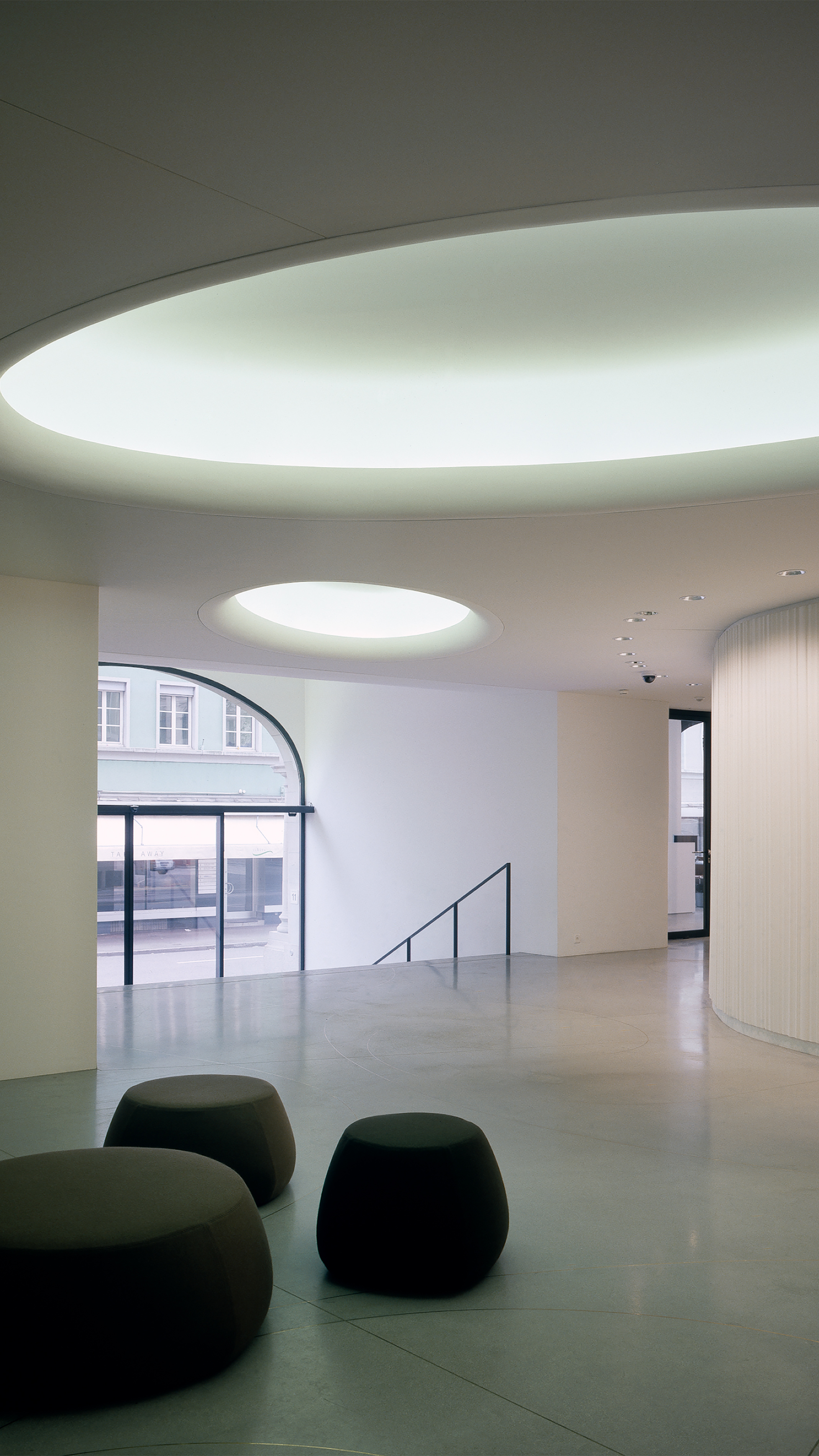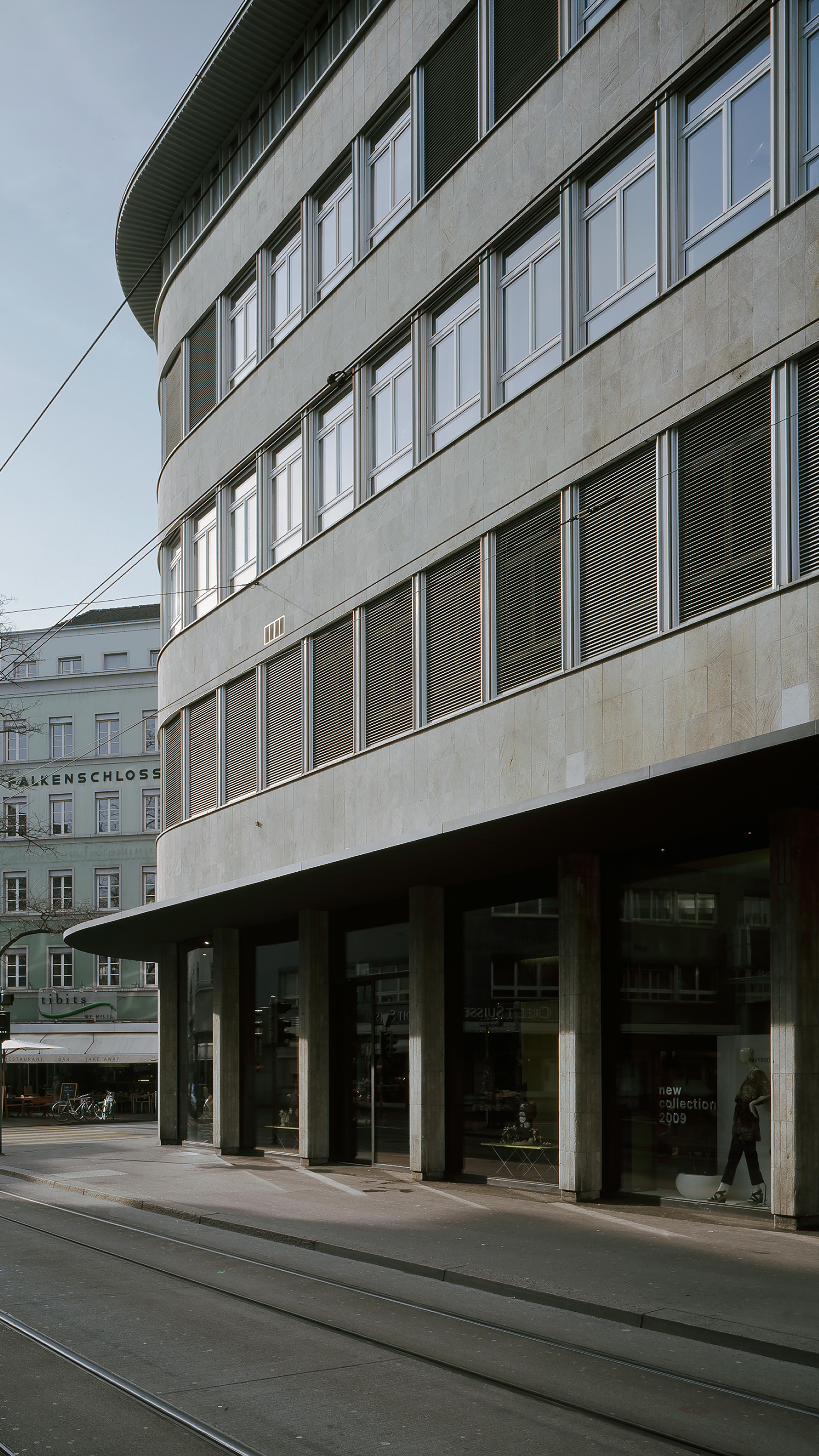 Mit dem Umbau des 1900 von Robert Zollinger erbauten Jugendstilgebäudes verfolgte die Bauherrschaft die Absicht, das Erdgeschoss für Publikum zu öffnen. Heute empfängt die NZZ ihre Gäste im neu gestalteten Eingangsfoyer und verfügt mit dem «NZZ Forum» über einen flexibel nutzbaren Raum, der sich tagsüber in Sitzungszimmer unterteilen lässt. Mit der Rekonstruktion der Kuppel zum Sechseläutenplatz hin konnte das ursprüngliche Erscheinungsbild wiederhergestellt und die Nutzfläche vergrössert werden. Im Boden eingelassene Messingintarsien – eine Vergrösserung des historischen NZZ-Schriftzugs – spannen den Bogen zum Jugendstil.