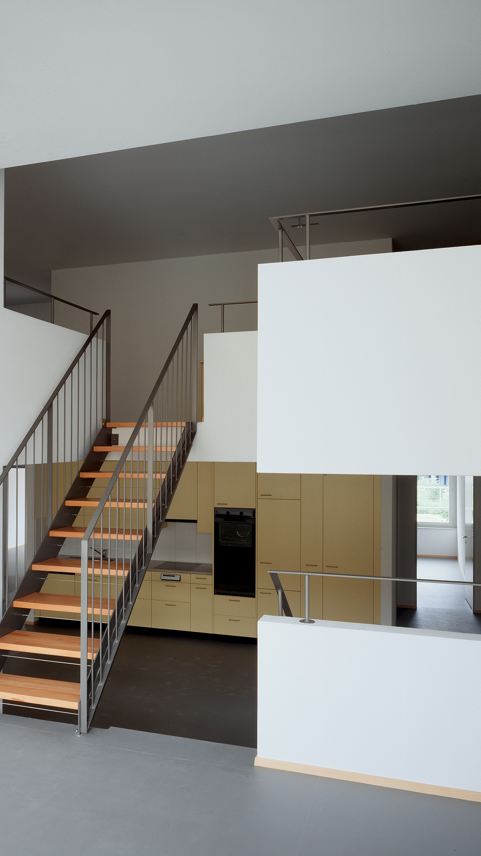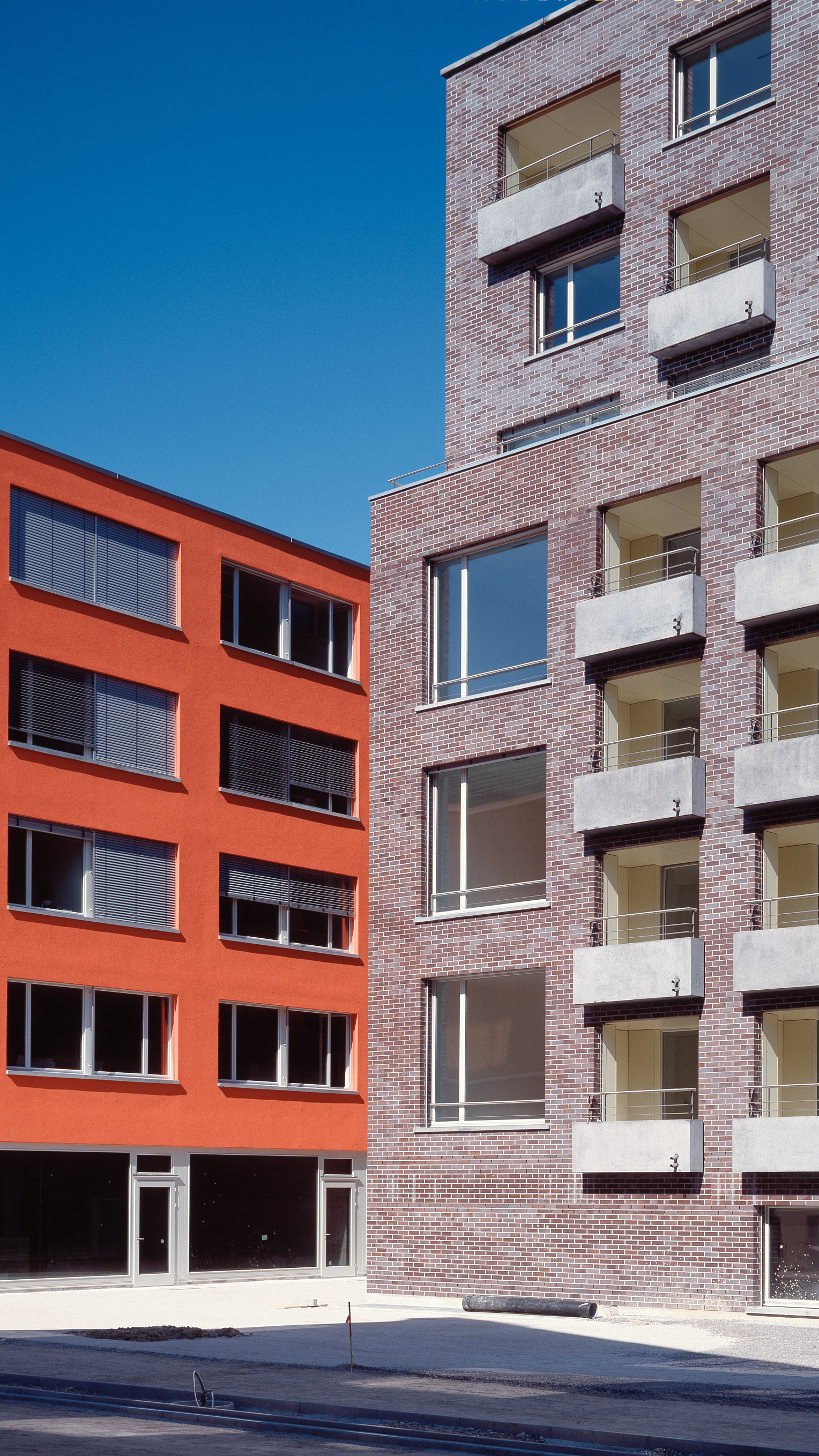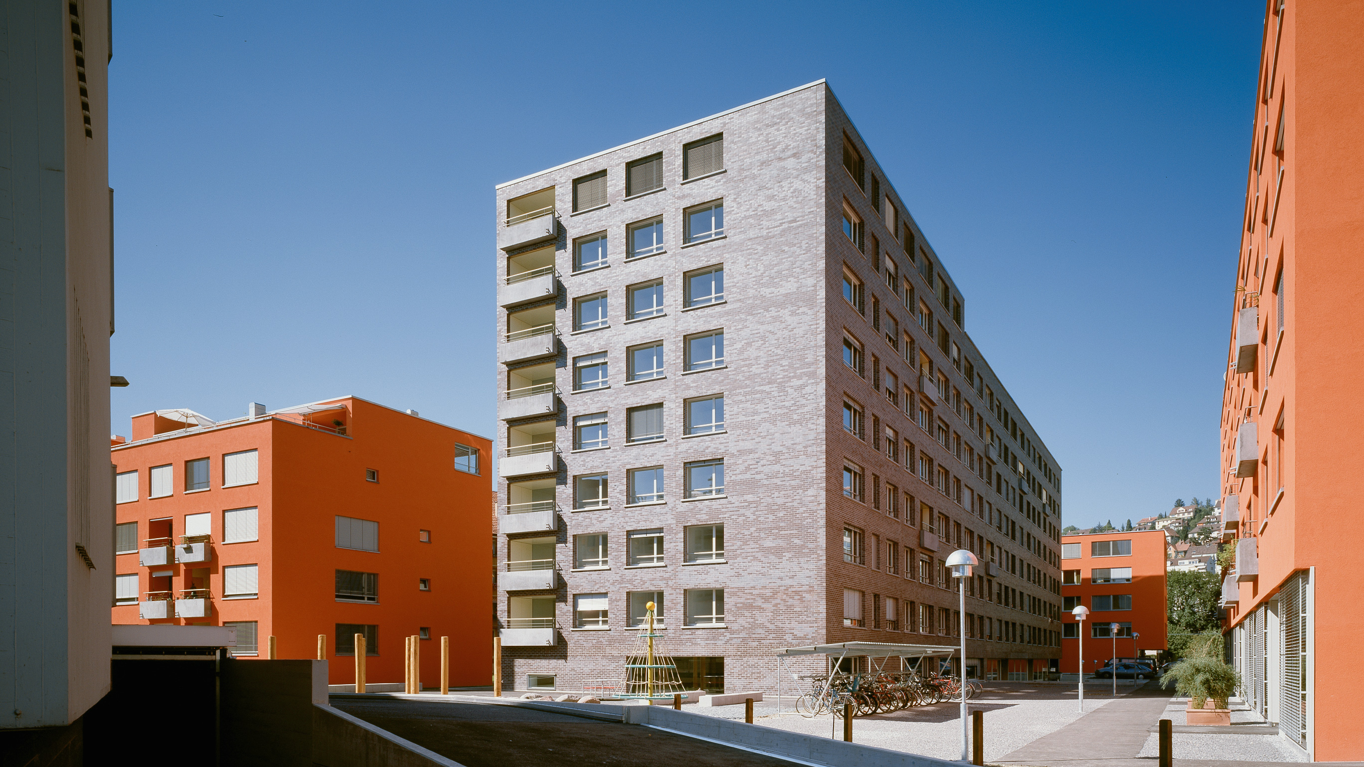 Im damals noch rauen ehemaligen Industriequartier Zürich-West sollte auf 6'700 Quadratmetern eine sozial durchmischte Struktur entstehen, die Wohnen und Arbeiten vereint. Die Überbauung besteht aus einem Hauptbau und drei kleineren Geschwisterbauten. Nutzungsmix und innere Organisation variieren je nach Orientierung. Dabei wurde die Struktur der Nutzung angepasst, ihr aber nie untergeordnet, um Spielraum für zukünftige Entwicklungen zu lassen. Im achtgeschossigen Hauptbau erlauben zwei überlagerte Erschliessungssysteme eine Vielzahl unterschiedlicher Wohnungsgrössen und -typen. In den Erdgeschossen befinden sich gemeinschaftliche Angebote wie Kindergarten, Hort, Waschsalon oder Restaurant.