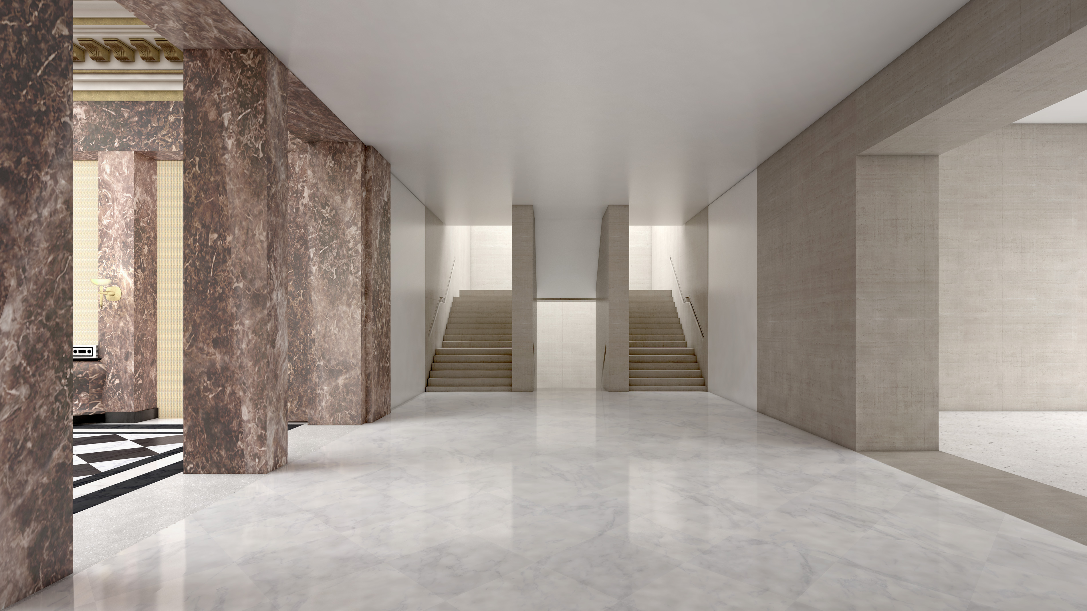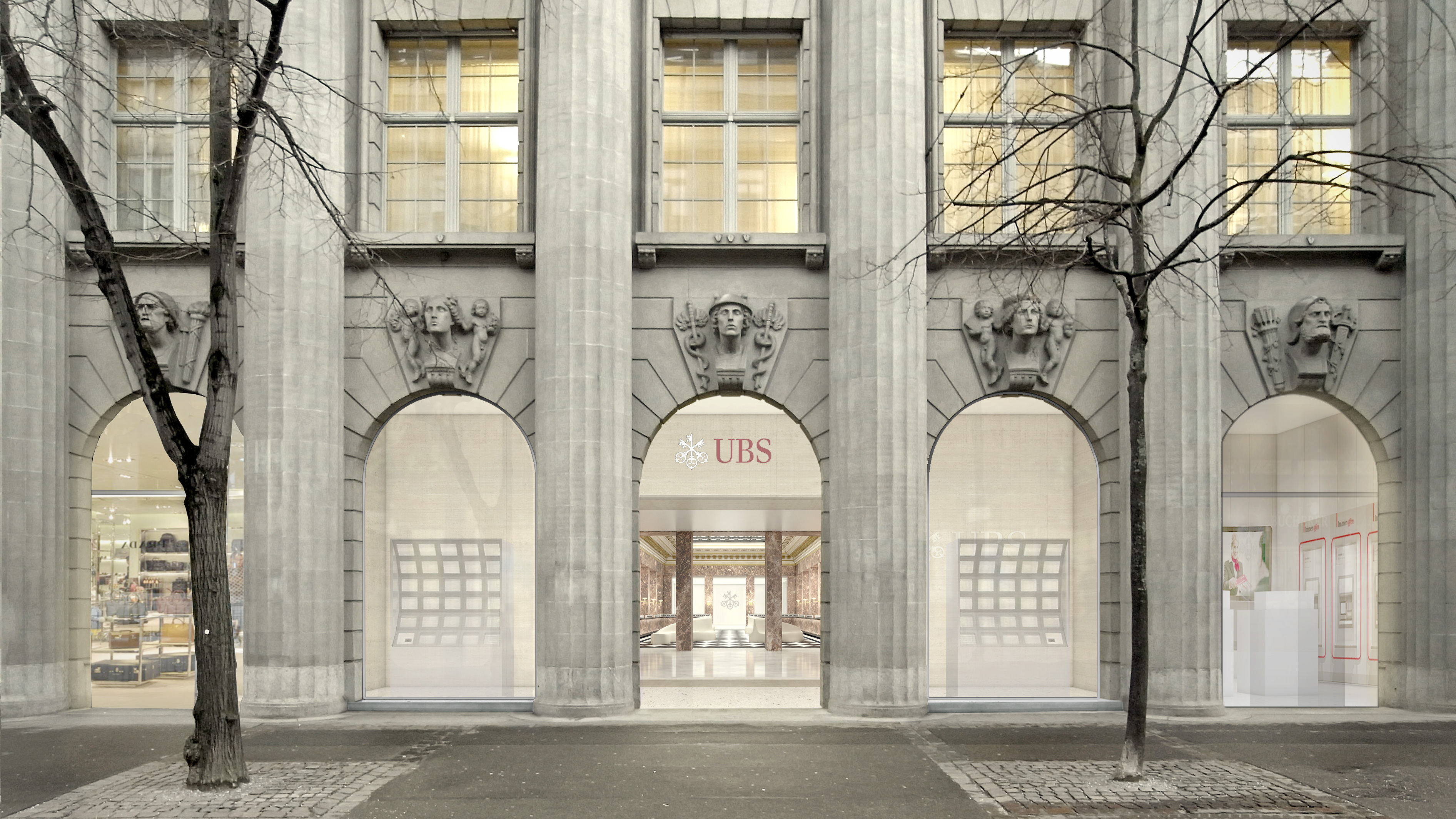 Im Rahmen der Instandsetzung des UBS-Hauptsitzes an der Zürcher Bahnhofstrasse galt es, eine kundenorientierte und zeitgemässe Geschäftsstelle zu schaffen sowie das Erdgeschoss für mehr Läden zu öffnen. Dem historisch bedeutsamen Bestand aus den Jahren 1917 und 1953 war dabei Rechnung zu tragen. Das vorgeschlagene Sanierungskonzept beinhaltet eine behutsame Erweiterung sowie die Rückführung auf historische Raumabfolgen. Die wertvolle Schalterhalle wird seitlich gefasst und in ihren ursprünglichen Zustand zurückversetzt, wodurch sie wieder zu einem multifunktionalen Zentrum und einem öffentlichen Raum wird. Besprechungszimmer, Kundenräume und Arbeitsplätze sind darum herum angeordnet.