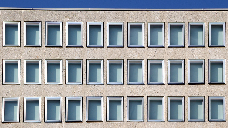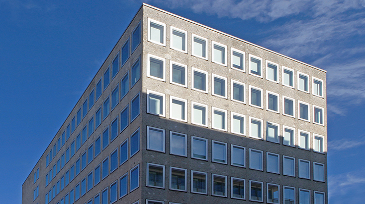 Denkmalpflegerische Gesamtsanierung eines Bürogebäudes aus den 70er Jahren.