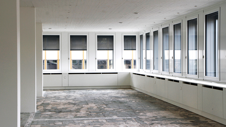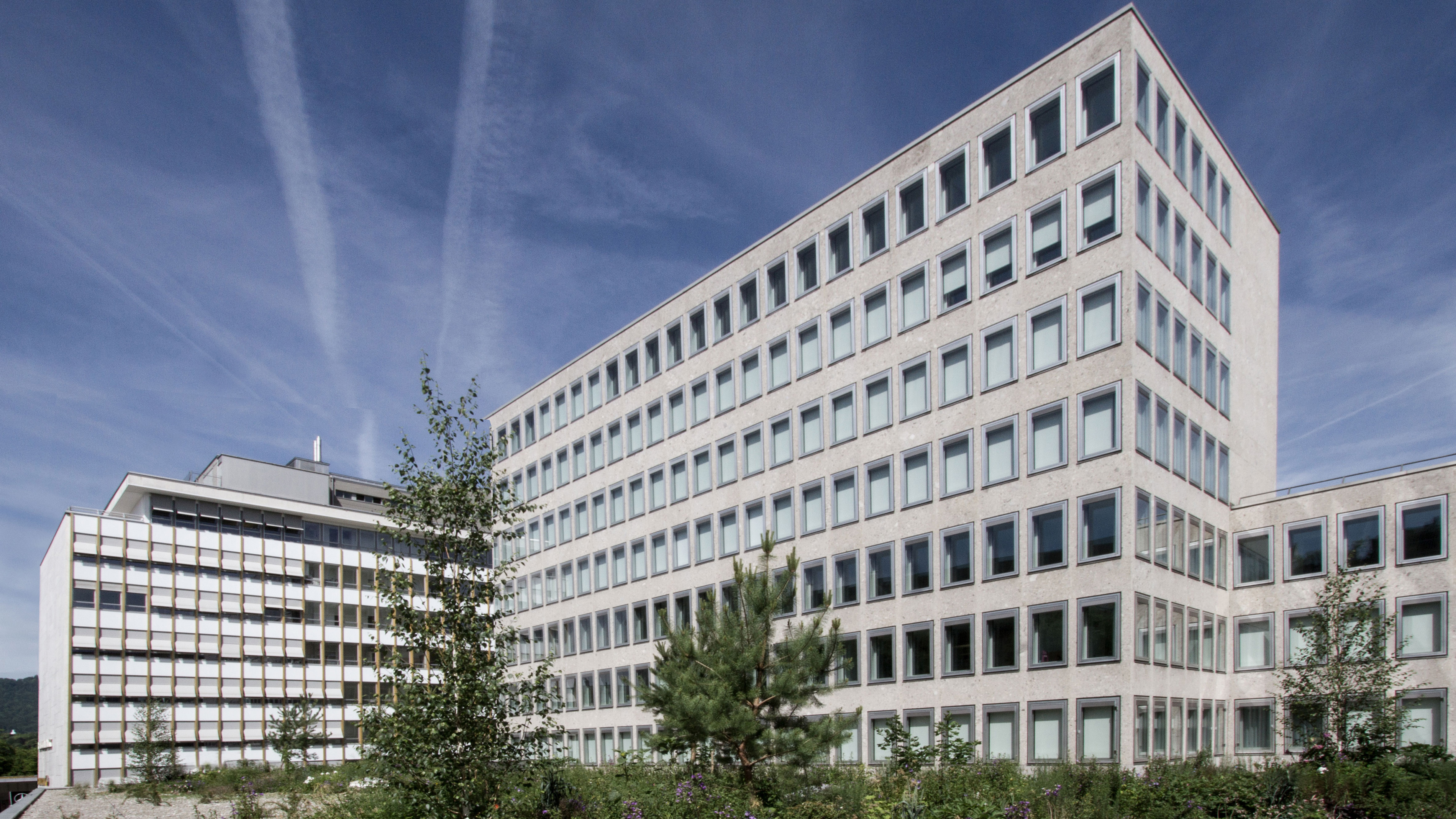 Das prägnante Geschäftshaus im Seefeld-Quartier, 1964 von Eberhard Eidenbenz erbaut, zählt zu den beispielhaften Zürcher Bauten der Nachkriegsmoderne. Die grössten Eingriffe der Totalsanierung betreffen die haustechnischen Installationen und die Fassade. Die Aluminiumwendefenster aus der Entstehungszeit verfügten über keinerlei Sonnenschutz. Um den Ausdruck des Gebäudes zu bewahren, wurde die bestehende Fassade inwendig mit einer neuen Fensterschicht ergänzt. Die Gummidichtungen der bestehenden Fenster wurden entfernt, so dass Luft im Zwischenraum zirkulieren kann. Dort befindet sich der neue Sonnenschutz. Eine in der Fassadenbrüstung integrierte Rio-Therm-Anlage gewährleistet die Raumklimatisierung.