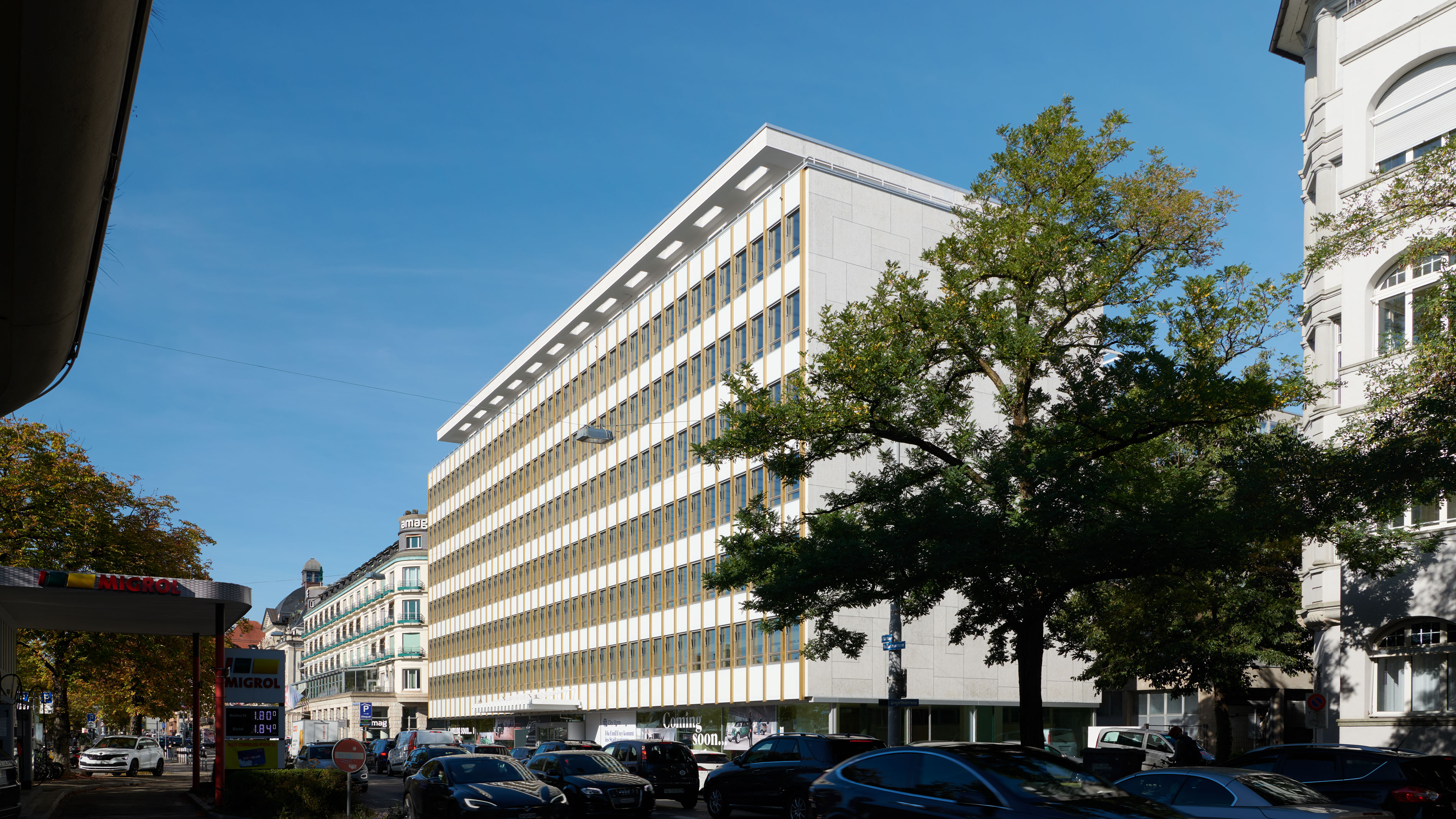 Das siebengeschossige Geschäftshaus mit zurückversetzter Attika liegt an städtebaulich prominenter Lage am Zürichsee, wo das Seefeldquartier in den Utoquai mündet. Das Haus wurde von 1961 bis 1965 von Architekt Armin Meili im Auftrag der Übersee- Handels AG erstellt und ist seit 2013 im Inventar der Denkmalpflege. Mit der Gesamtsanierung wird die Primärstruktur und die zweigeschossige Eingangshalle samt aller Boden- und Wandbeläge erhalten. Der Ersatz der haustechnischen Anlagen und die energetischen Anforderungen bedingen eine Rekonstruktion der Gebäudehülle. Der 1:1 Ersatz der Fassaden wurde in enger Zusammenarbeit mit der Denkmalpflege entwickelt.