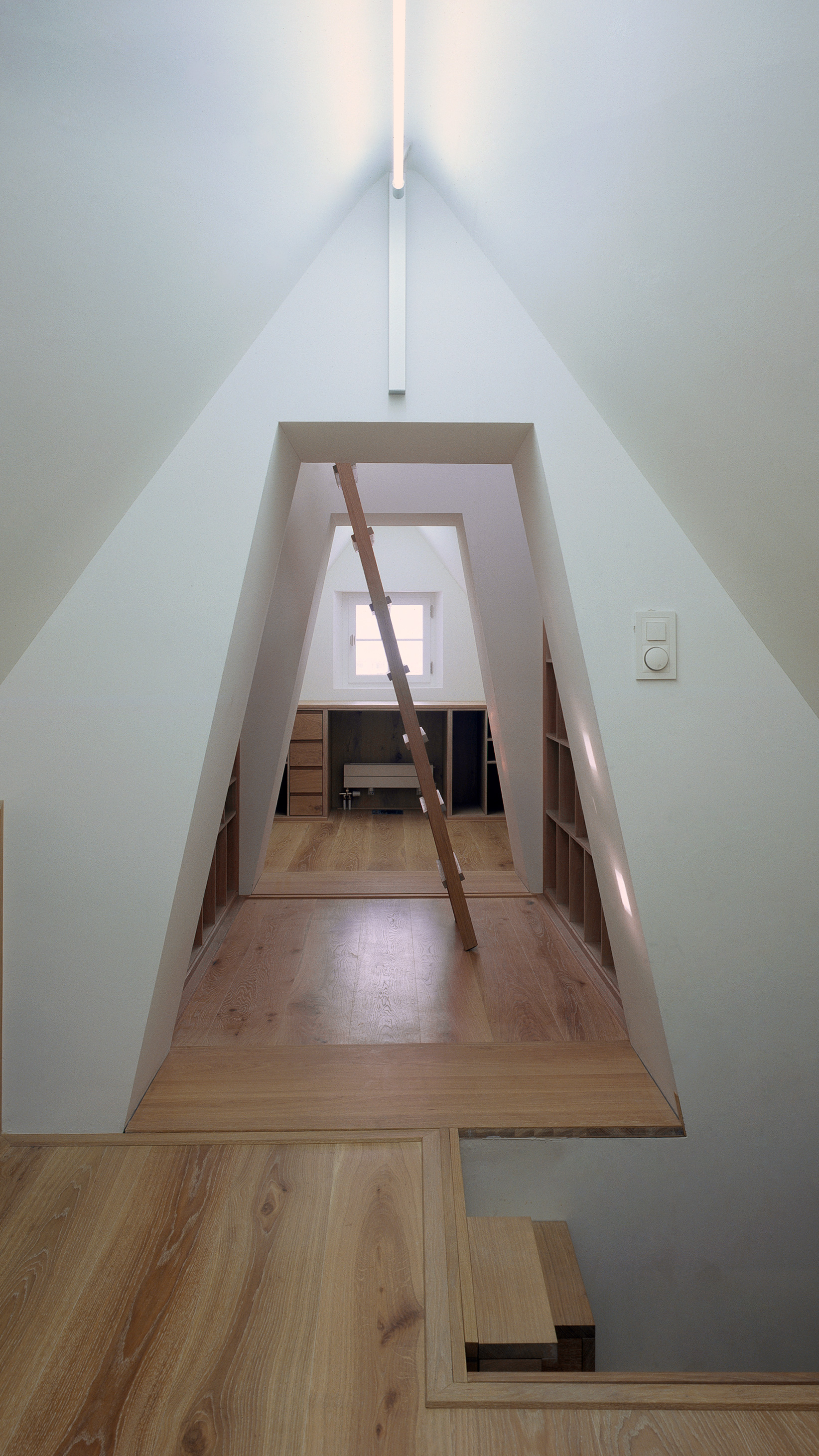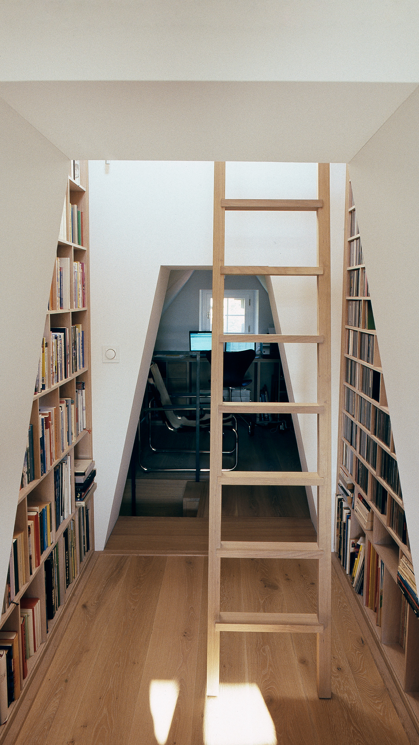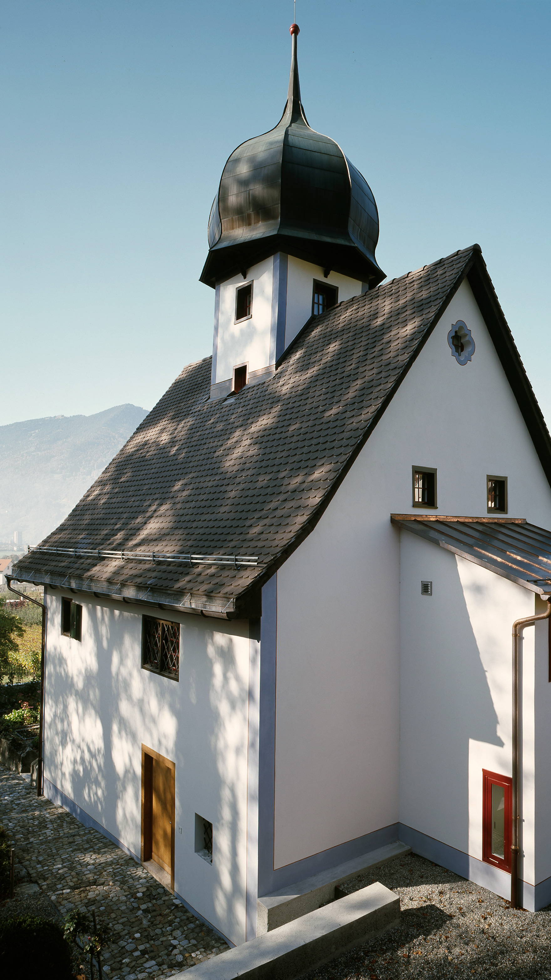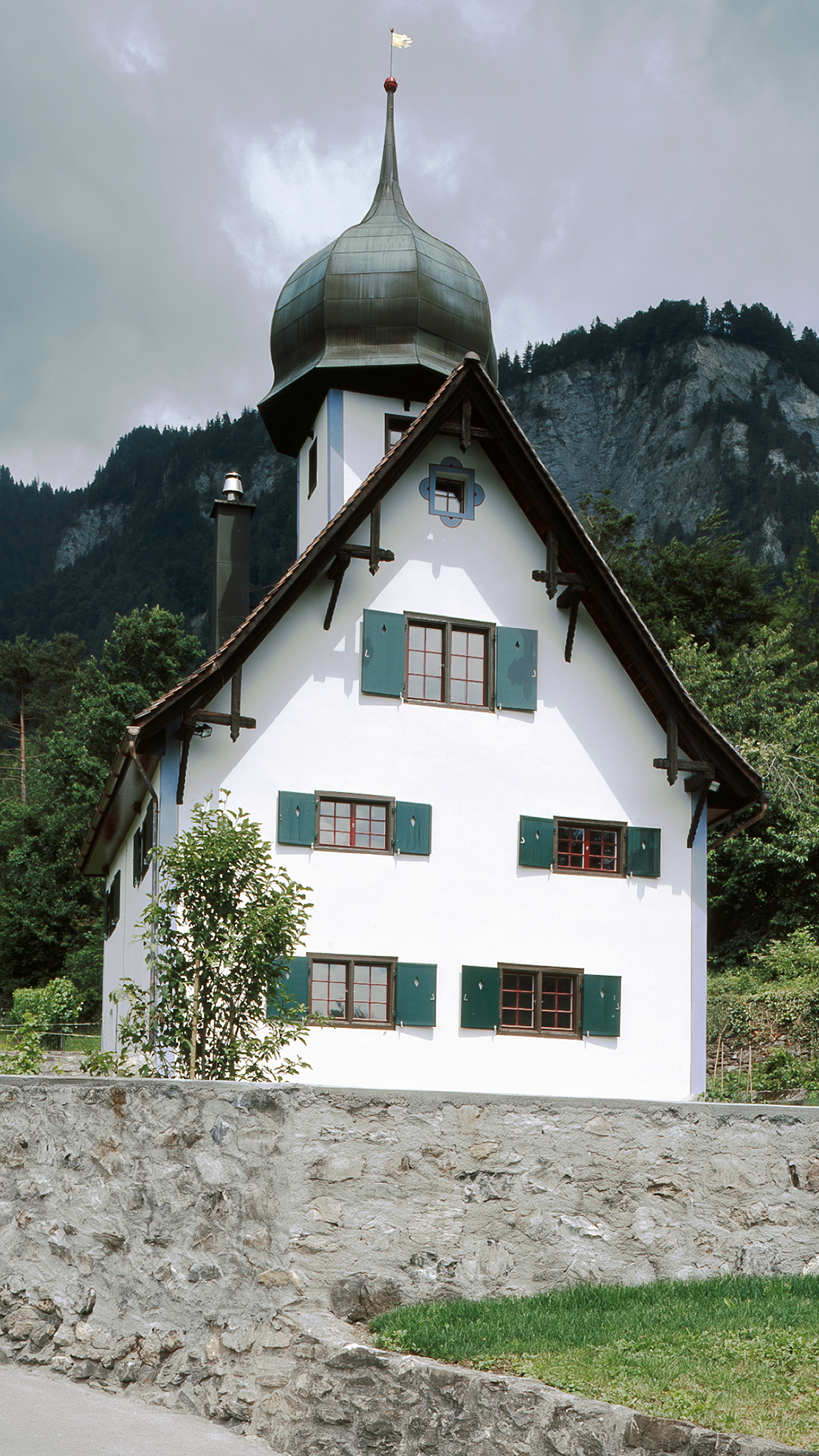 Mitten in den Rebbergen von Malans steht dieses Weinberghaus aus dem 17. Jahrhundert. Nach einem unsachgemässen Umbau galt es, zur Grundstruktur des Gebäudes zurückzufinden. Dazu wurde es bis auf den Rohbau zurückgebaut. Die Grundstruktur des Baus, ein Quadrat unterteilt durch ein asymmetrisches Mauerkreuz, prägt die Grundrisse noch heute. In einem neuen Anbau mit Betonfundament und Holzaufbau, der den vorgefundenen Annex ersetzt, sind Badzimmer und Küche untergebracht. Der vier Meter hohe Turm beherbergt nun eine Bibliothek. Basierend auf archäologischen Untersuchungen wurde die unter Denkmalschutz stehende Fassade rekonstruiert.