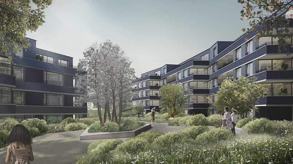 Überbauung mit 90 hochwertigen Wohnungen und grosszügigem Freiraumkonzept.