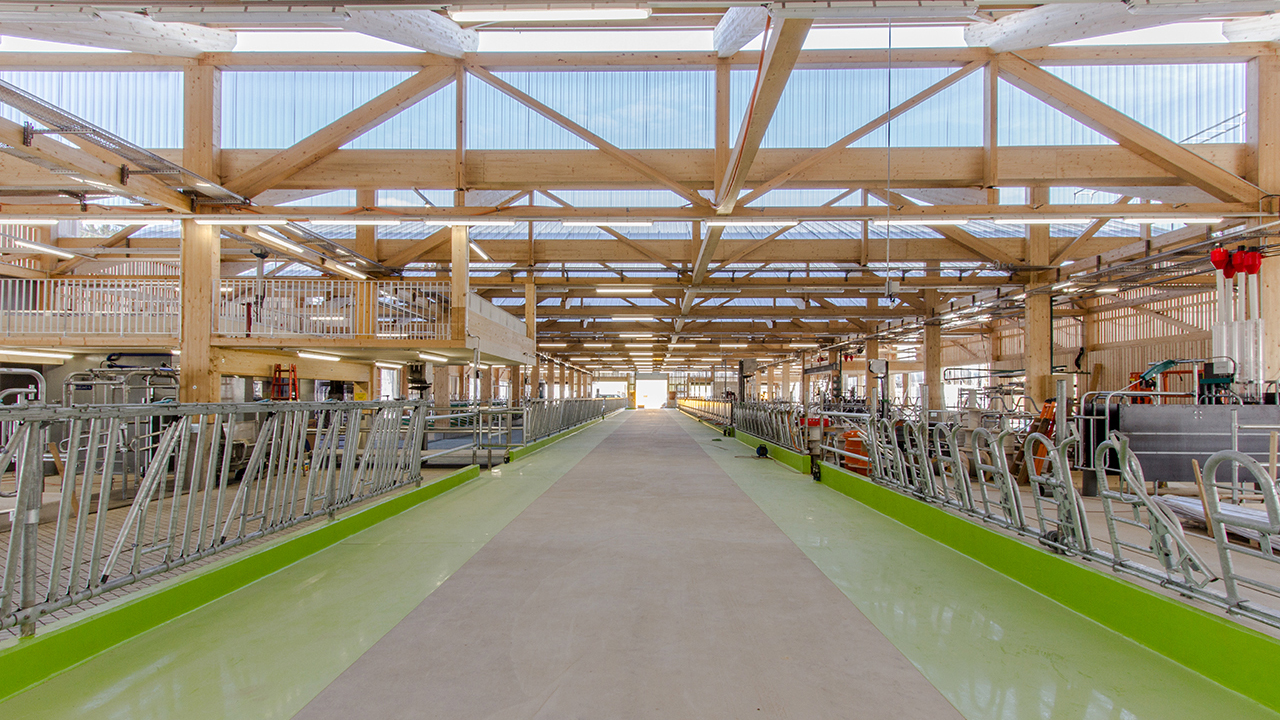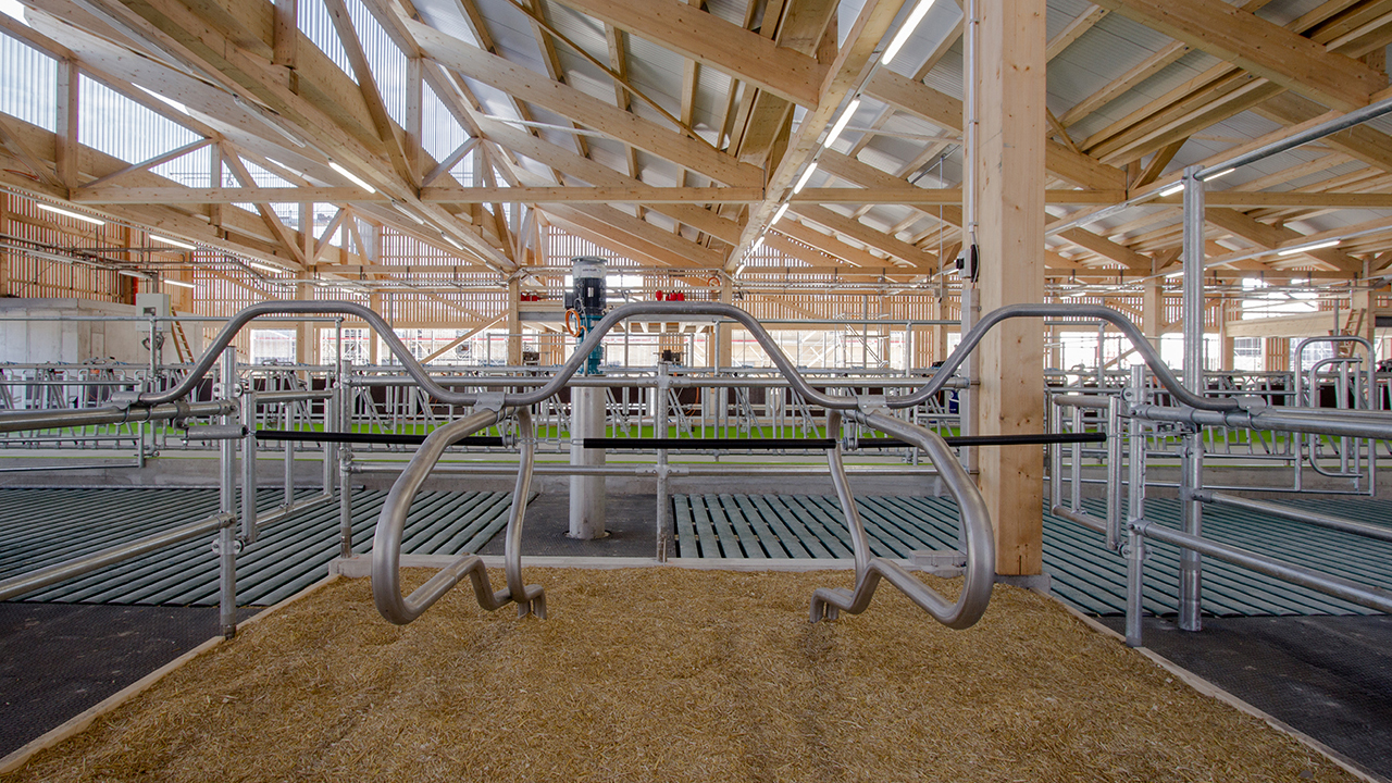 In Lindau, farmers, agronomists and vets work together to carry out research into a sustainable global food supply. Critical planning objectives included integrating modern research facilities, coordinating the priorities of the future users, and meeting the requirements of the unusual inhabitants – the cows. Just as in the tender design by Itten+Brechbühl, the completed project is dominated by the distinctive and functional shed roofs and wood throughout. The clear demarcation of functional areas through the arrangement of the buildings continues in the colour scheme of the interior rooms.