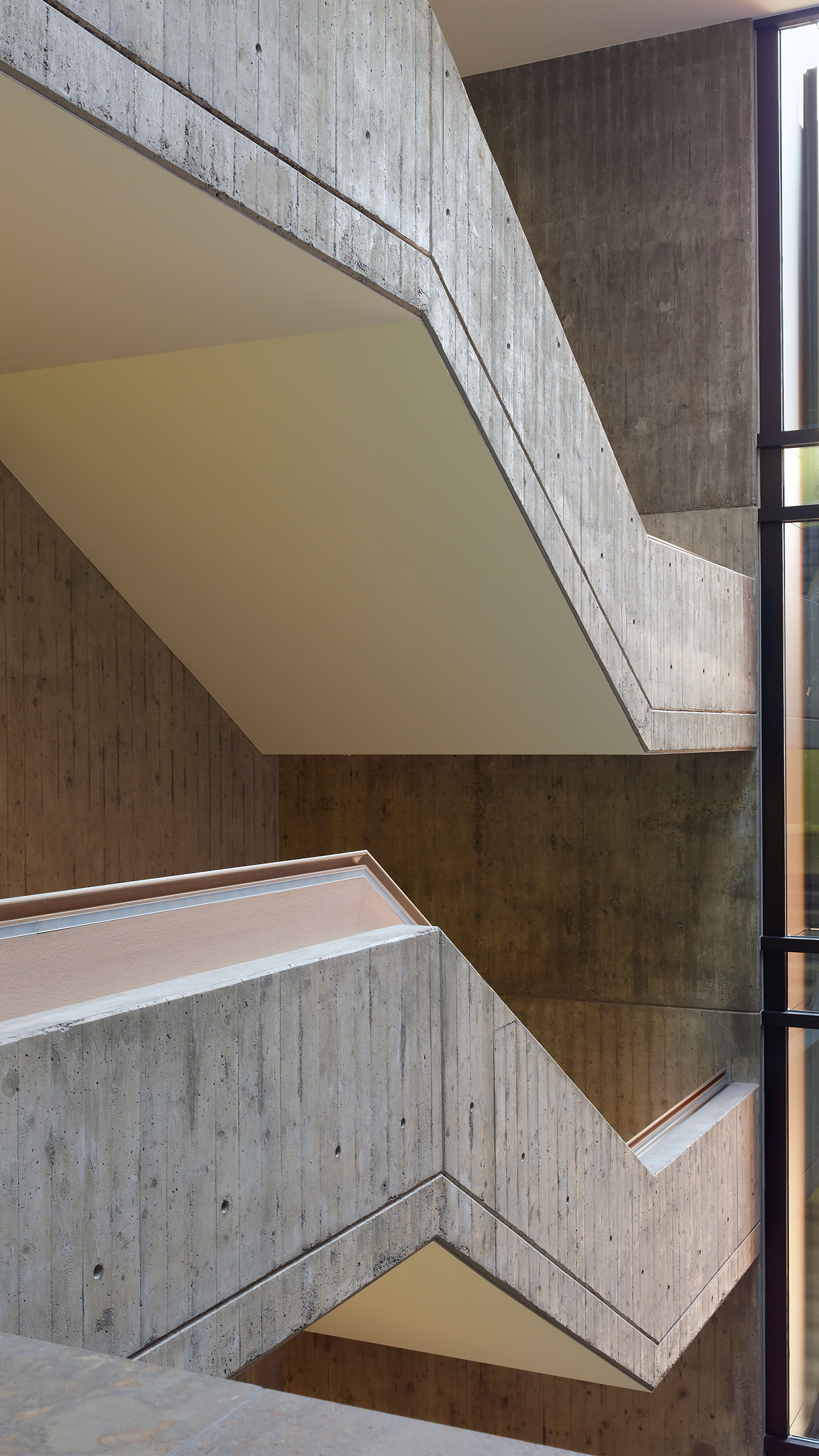 The striking residential and commercial building by Eduard Neuenschwander (1973) is one of a series of detached buildings along the lakeside promenade all designed around the same time. The renovation brings the building’s forthright architectural language, rooted in post-war modernism, back to life. Where it was necessary to make more significant interventions, new and old were interwoven to create an inseparable whole. The additional formwork is modelled on the original look, while interim changes to the layout have been restored back to the original state and the new roof landscape is based on sketches by Neuenschwander that were never executed. New floor-to-ceiling glazing provides a direct connection to the lake.