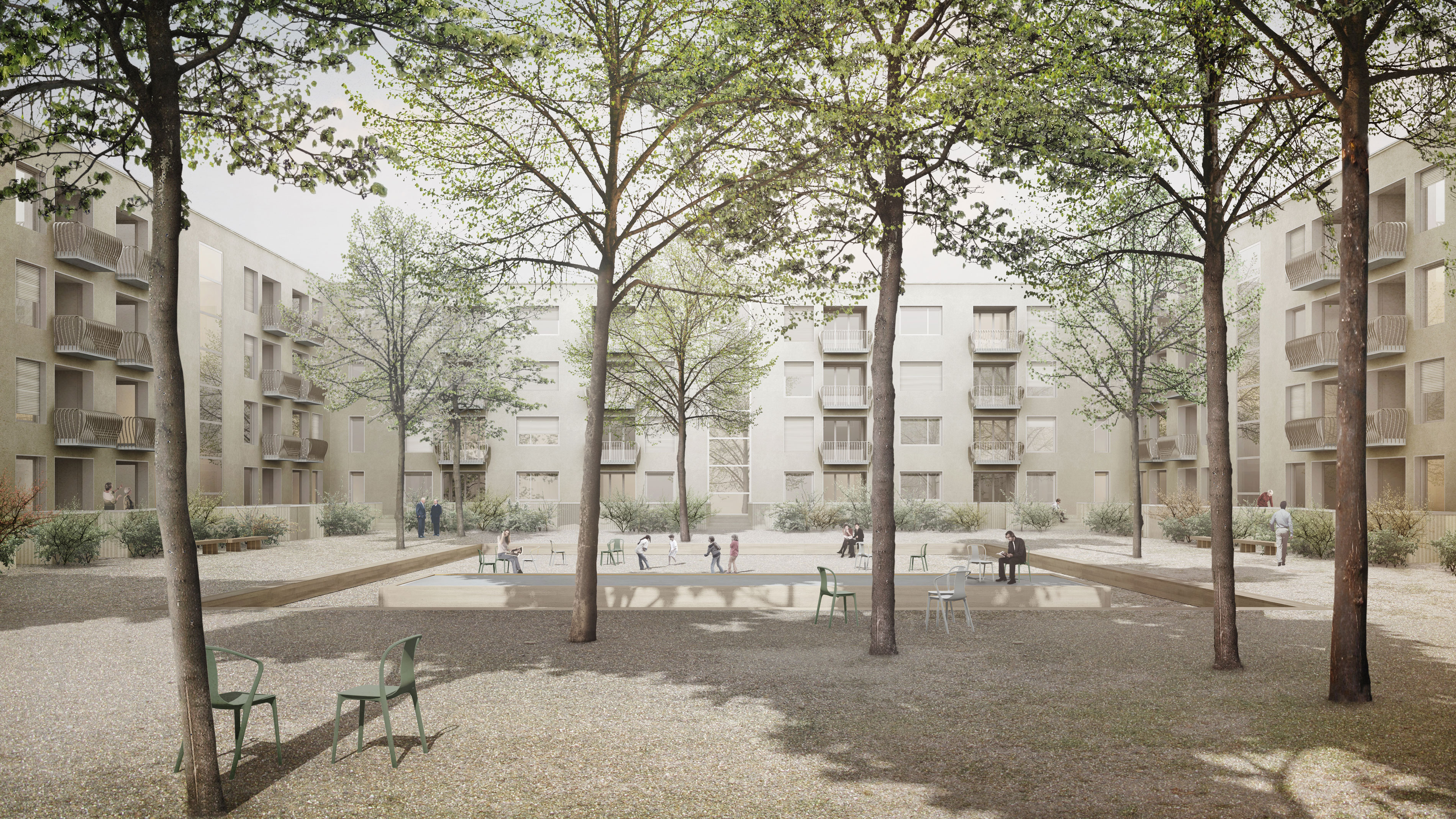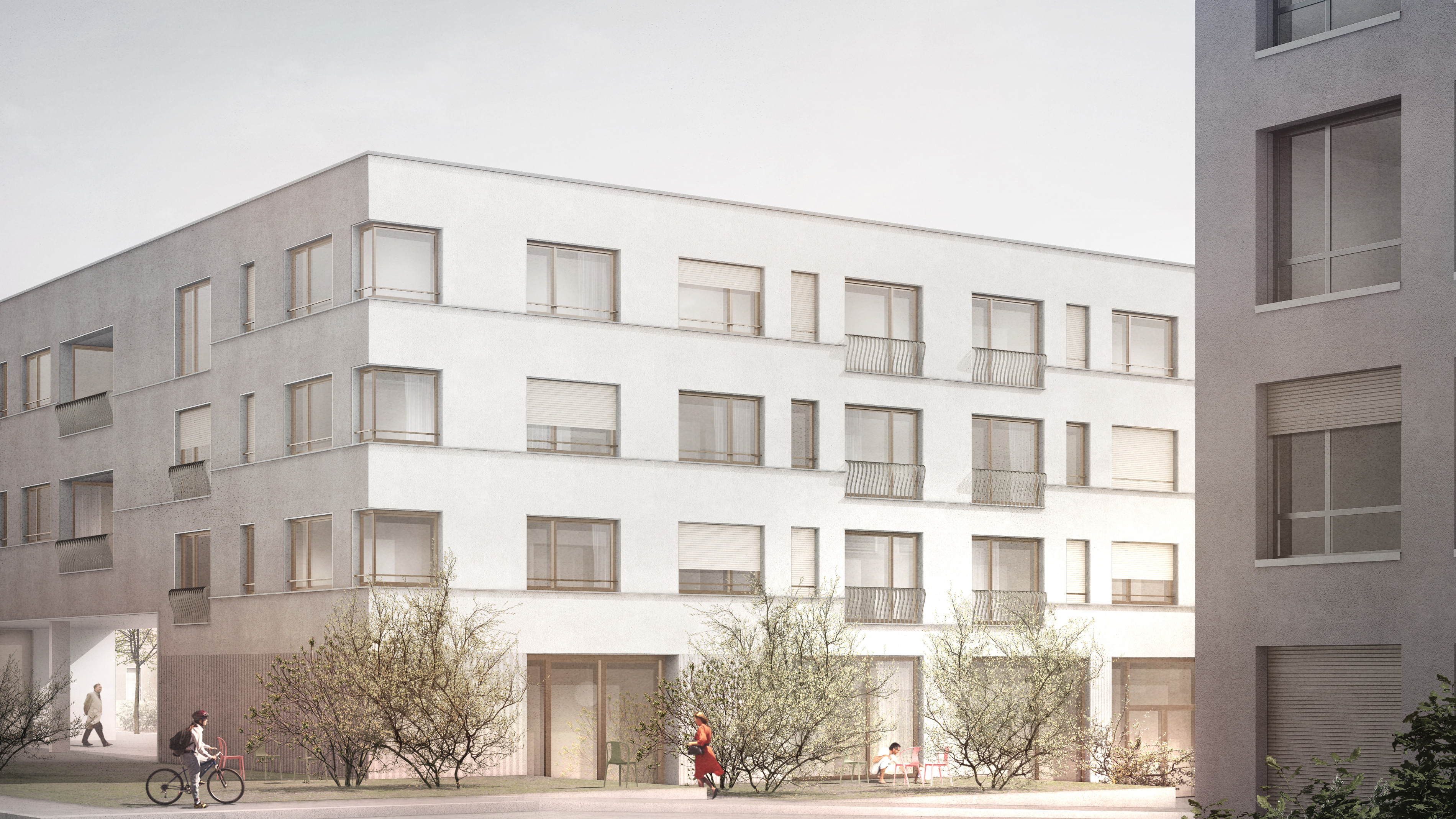 This classic block perimeter development is based on the core urban planning concept for the new neighbourhood in which it is located. It sets up a clear distinction between the public street area and the semi-private courtyard. The ground floors are reserved for small businesses, communal areas and studios. The latter have a split-level design, with direct access to the higher-level residential spaces on the courtyard side. On the southern side, the building opens onto the street. Residents and visitors can walk from here into the courtyard, which offers a space to linger. All of the apartments face the courtyard and do not have any corridors. Instead, enfilades and open-plan living and dining areas create a feel of spaciousness within each home.
